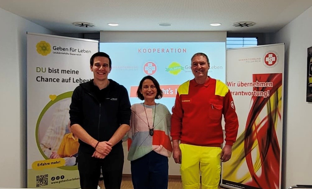 Geben für Leben – Leukämiehilfe Österreich und der Samariterbund Vorarlberg haben eine bedeutende Kooperation beschlossen. Künftig wird der Samariterbund Vorarlberg im Rahmen dieser Partnerschaft Typisierungsaktionen für Geben für Leben durchführen und damit aktiv zur Suche nach potenziellen Stammzellspender:innen beitragen.