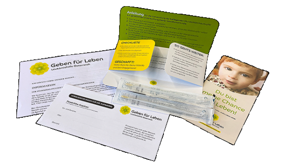 Mit einem Typisierungsset kann sich jede/r bequem von zuhause aus als potentielle/r LebensretterIn registrieren lassen. Und vielleicht bald für eine Familie zum Superhelden werden.