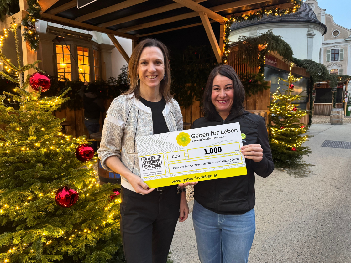 Die Metzler & Partner Steuer- und Wirtschaftsberatung GmbH aus Bregenz verzichtete heuer auf Weihnachtsgeschenke für Kund:innen und entschied sich stattdessen, Menschen in Not zu helfen: € 1.000 wurden an Geben für Leben – Leukämiehilfe Österreich gespendet.
