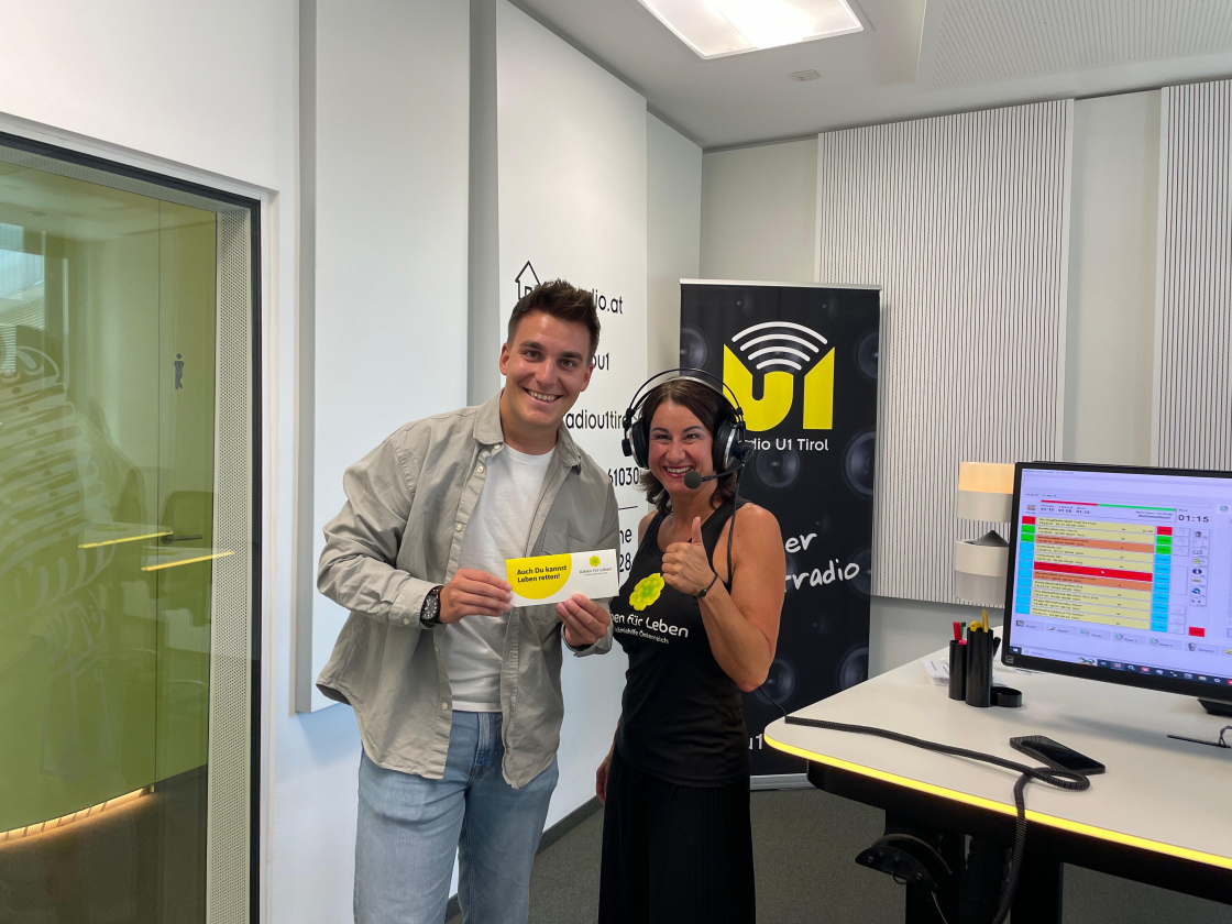 Engagiert zeigte sich das Team von Radio U1 Tirol. Susanne Marosch, Obfrau von Geben für Leben, wurde von Moderator Philipp Wachter zu einem einstündigen Live-Interview ins Studio nach Schwaz eingeladen. Im Interview wurde nicht nur informiert, sondern auch zur Typisierung aufgerufen.