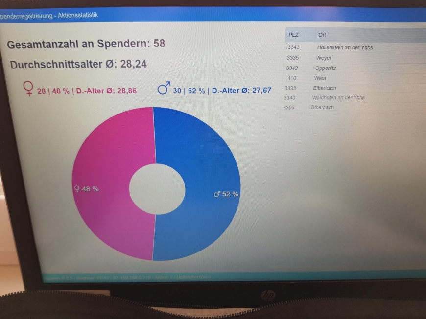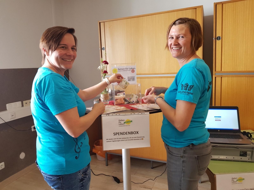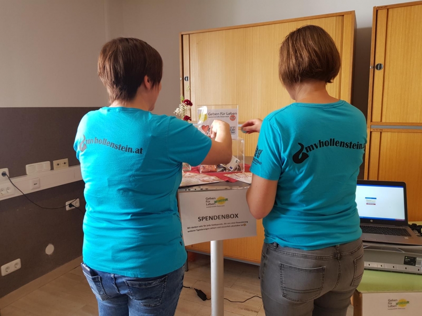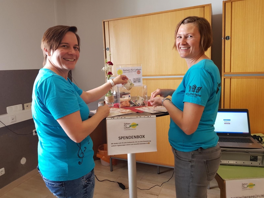 Die Landjugend Hollenstein startete eine Typisierungsaktion für uns. Theresa Hofmacher meinte dazu: „Wir haben von befreundeten Landjugendgruppen von dieser tollen Sache erfahren. Somit war für uns sofort klar, das müssen wir bei uns in Hollenstein auch auf die Beine stellen“. Die Landjugend organisierte am Vorplatz einen Ausschank mit Kaffee und Kuchen gegen freiwillige Spenden.