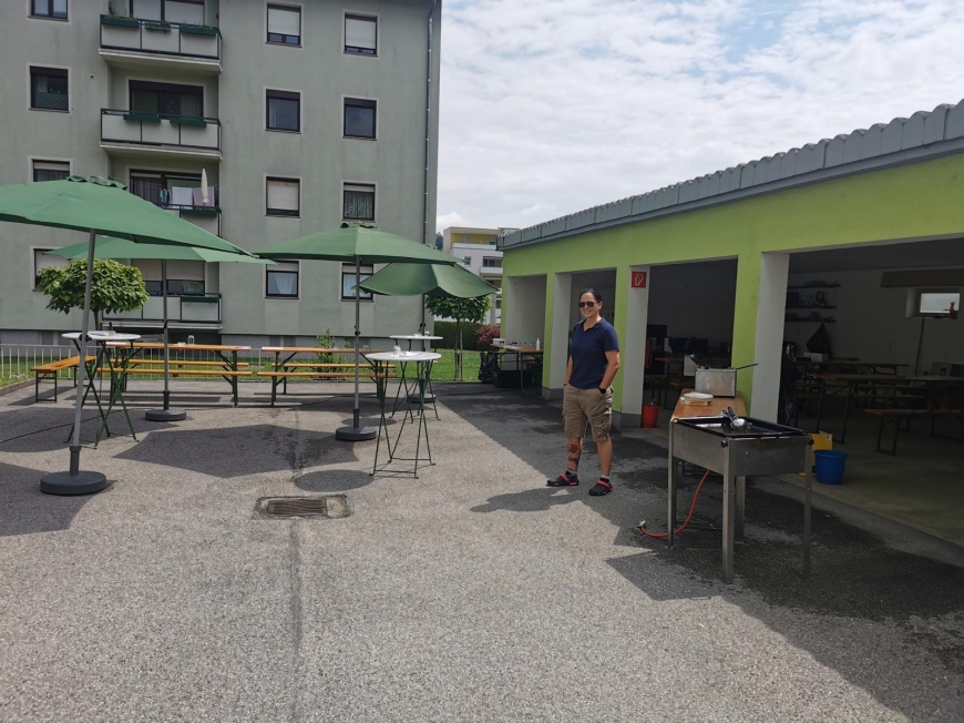 Auch am zweiten Tag, der eigentlich nur zum Zusammenräumen gedacht war, fanden sich noch spendenfreudige Menschen ein. Der Griller wurde erneut gestartet und da die Bierbänke noch nicht weggeräumt waren, haben sie das Fest einfach um einen Tag verlängert. So konnten in Summe € 450.- für Geben für Leben gesammelt werden!