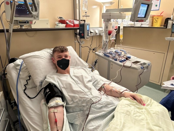 Bild: Unser Spender Matthias bei der Stammzellspende – Download Foto