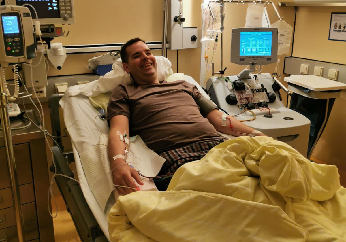 Bild: Dominic bei der Stammzellspende – Download Foto