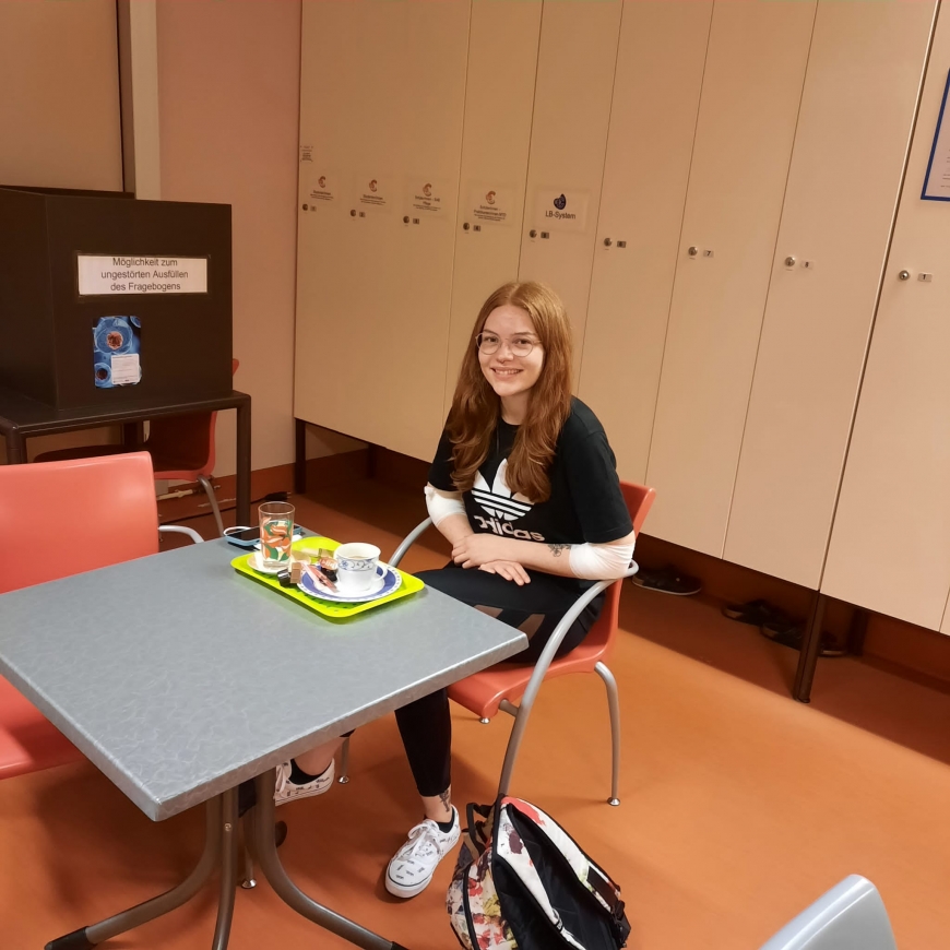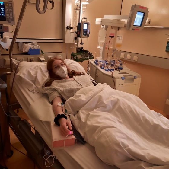 Bild: Unsere 325. Lebensretterin Pia bei der Stammzellspende – Download Foto