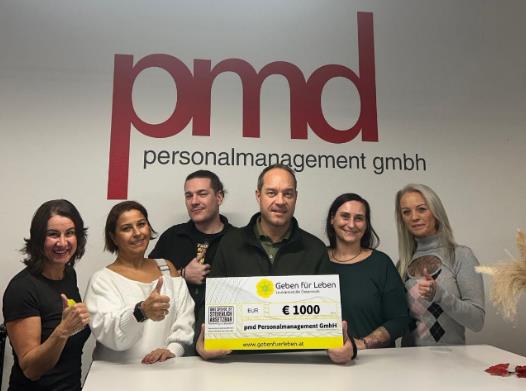 Die pmd Personalmanagement GmbH beweist einmal mehr ihre starke Verbundenheit mit unserer Mission: Schon seit mehreren Jahren unterstützt uns das Unternehmen tatkräftig, und auch in diesem Jahr dürfen wir uns wieder über eine großzügige Spende von € 1.000 freuen.