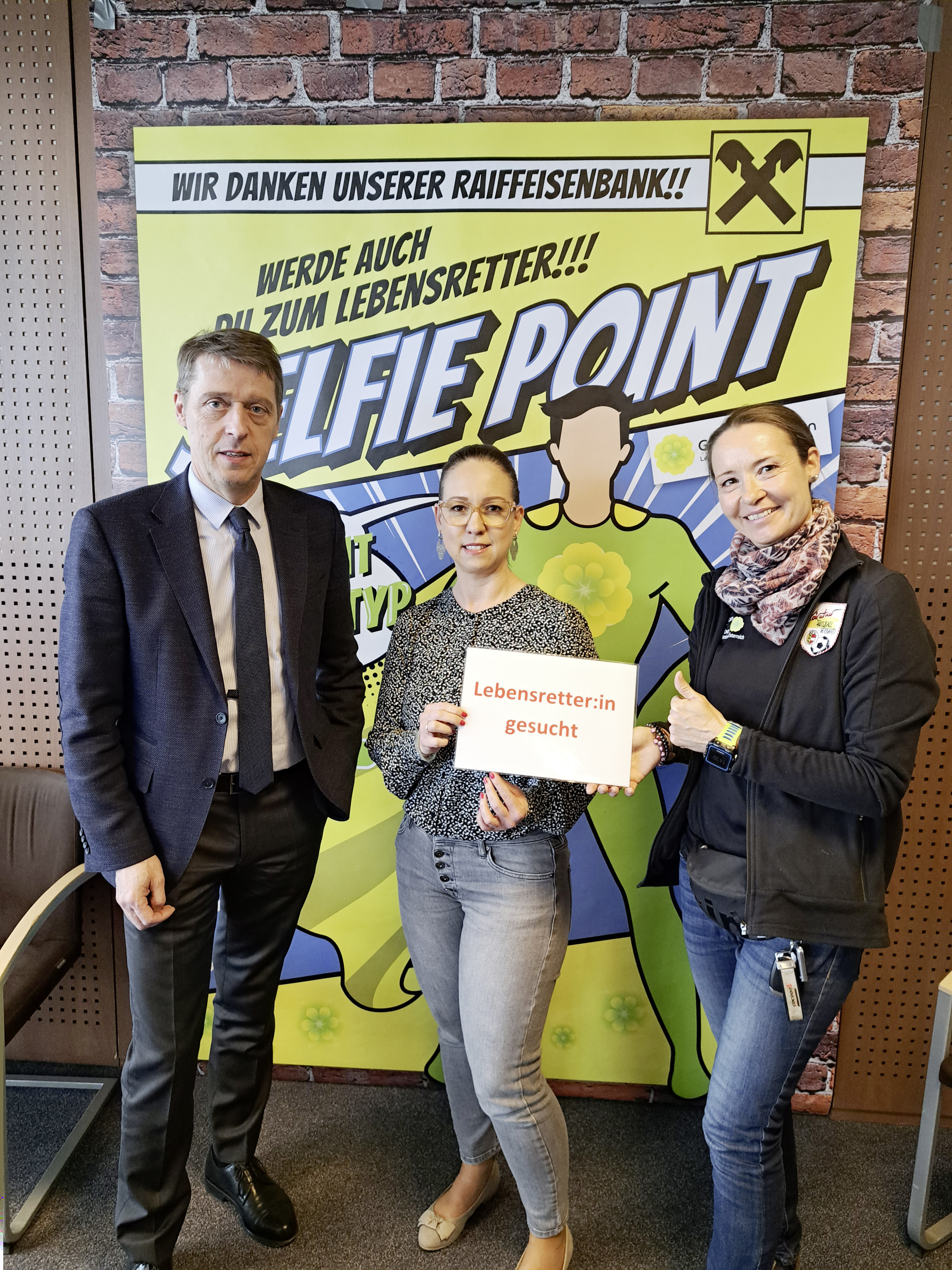 Vielen Dank an Doris Pehr (RLB Marketing & Kommunikation) für die Unterstützung in der Organisation und die Bereitstellung der Räumlichkeiten. Ein großes Dankeschön auch an Annalena Knapp, MA (RLB Marketing & Vertrieb) für die großartige Unterstützung bei sämtlichen Aktionen in den Raiffeisenbanken sowie an Herrn HBV Christopher Weiss, BA (Obmann Raiffeisen Club Kärnten) für die Initiierung dieses Kärnten-weiten Raiffeisenprojektes. Wir hoffen, dass ein/e LebensretterIn darunter sein wird.