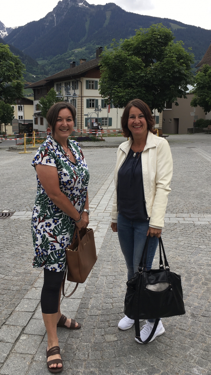 Bürgermeister Jürgen Kuster, die Tschaggunser Bürgermeister-Kandidatin Andrea-Tschofen Netzer, Susi Schönherr von Montafon Tourismus und ich nahmen sie feierlich am Kirchplatz vor dem Gemeindeamt in Empfang, wo wir Remco unseren "Award der Dankbarkeit" überreichten.