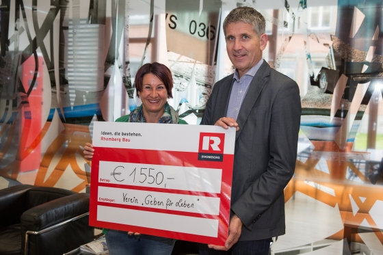 Ende März unterstützte uns das Vorarlberger Bauunternehmen Rhombergbau gleich doppelt. Denn einerseits ließen sich im Rahmen der intern organisierten Typisierungsaktion 31 MitarbeiterInnen durch einen Speicheltest typisieren. Und dann übernahm das Unternehmen auch noch die Kosten von € 1.550,-, die mir in Form eines Schecks in der Bregenzer Firmenzentrale übergeben wurden.