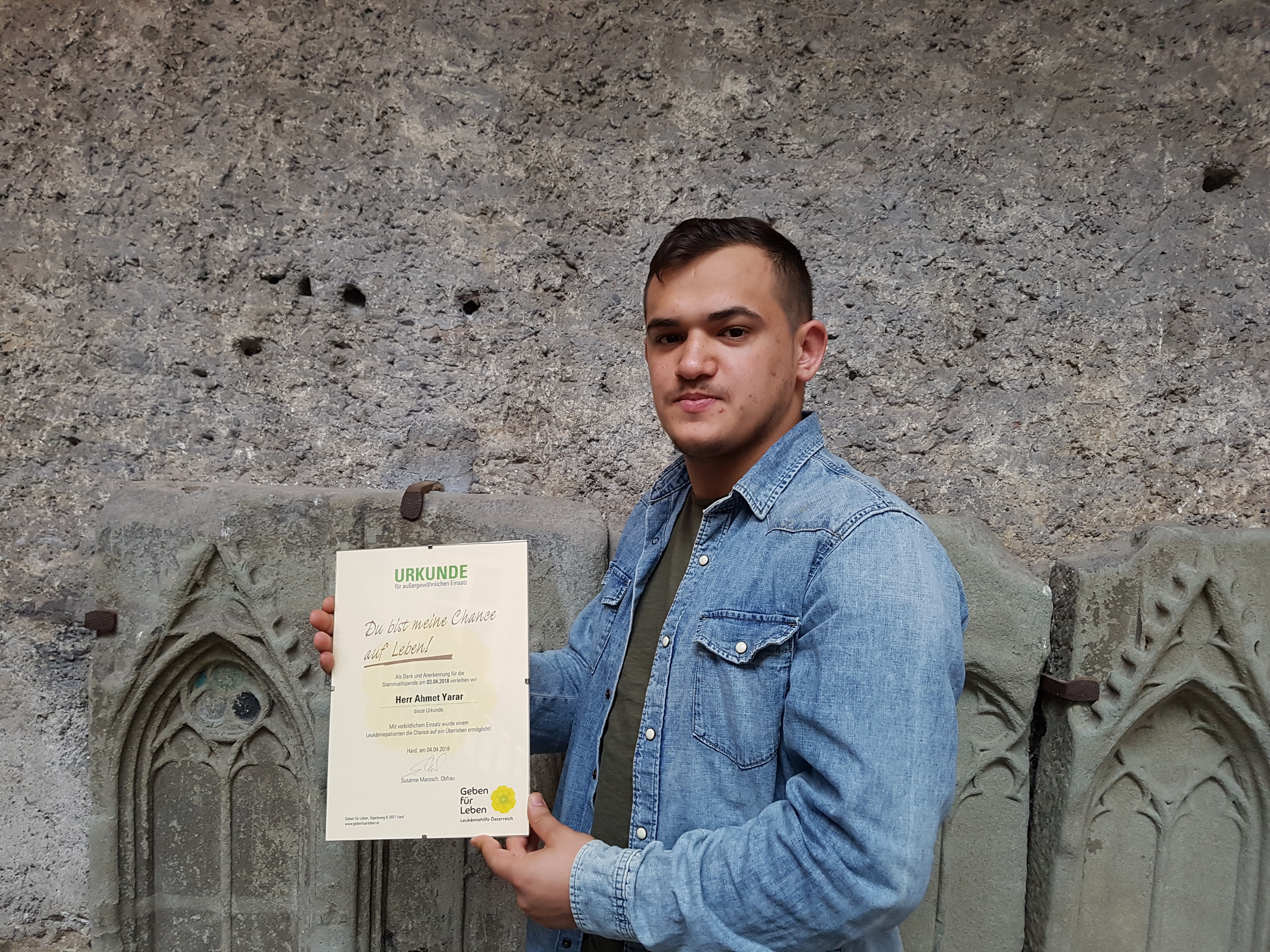 Ahmet Yarar (19) aus Frastanz ließ sich im Mai 2017 auf der türkischen Buchmesse in Dornbirn typisieren. Auf dem Weg durch die Messe kamen er und seine Freunde an unserem Stand vorbei und beschlossen spontan, sich typisieren zu lassen. Und das, obwohl Ahmet großen Respekt vor Nadeln hat. Er zog die Vorbereitungen und die Stammzellspende aber ohne zu zögern durch.