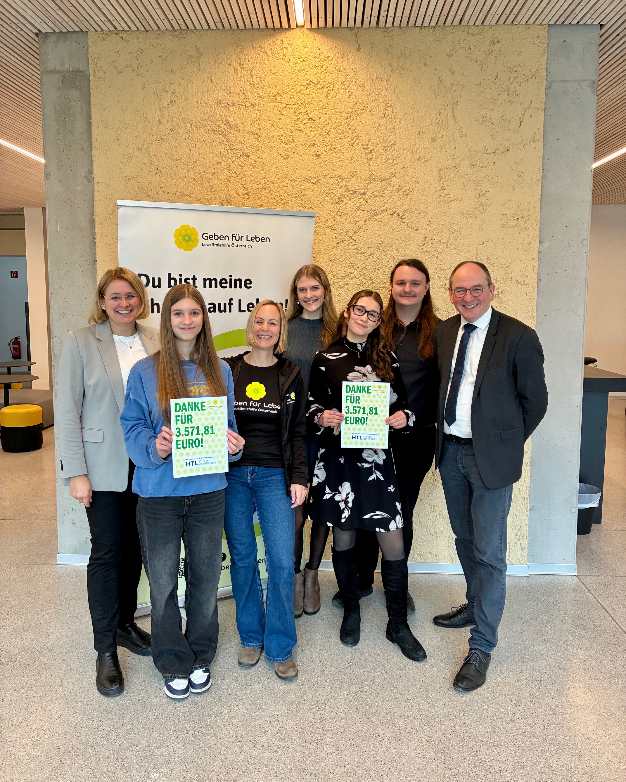 Ein großartiges Zeichen der Solidarität setzten die Schüler:innen aller HTLs in Oberösterreich. Im Rahmen ihres gemeinsamen Sozialprojekts „Hilfe für die Helfer“ wurde eine Geldspendensumme von € 3.700 gesammelt und am 11. Dezember an Geben für Leben – Leukämiehilfe Österreich übergeben.