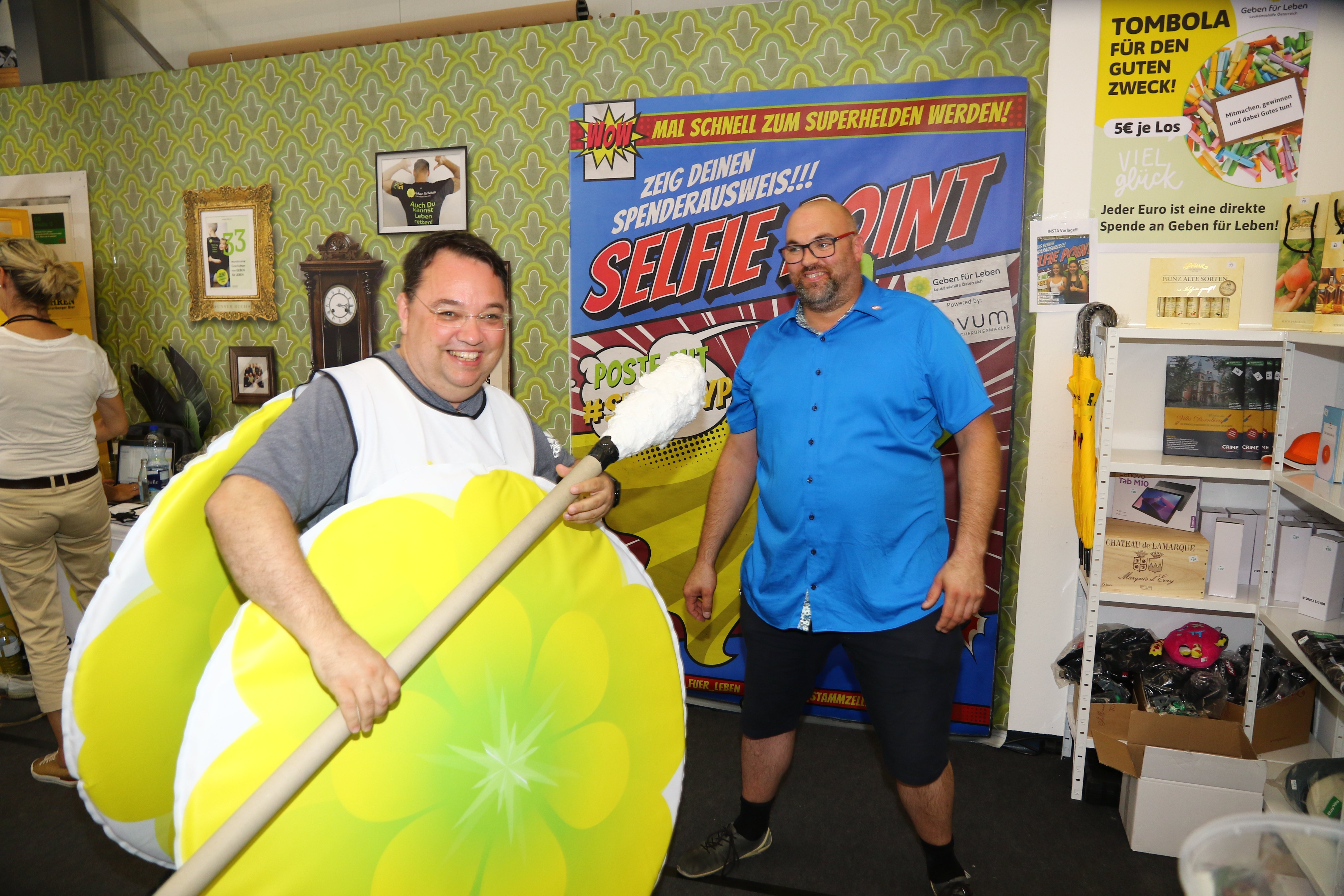 Besonders erwähnen möchten wir diesmal gleich zwei ehrenamtliche Helfer: Michael Fleisch (Ländle Kassa) - er hat sich unerschrocken bei 30 Grad als unser Maskottchen in voller Montur zwei volle Tage in die Sonne gestellt und uns die jungen Menschen an den Stand geschickt!!! Und Christian Köb (KÖB Hausbetreuung), der zwei Tage beim Auf- und drei Tage beim Abbau von früh am Morgen bis spät am Abend mitgeholfen hat. Vielen Dank für Euren tollen Einsatz!