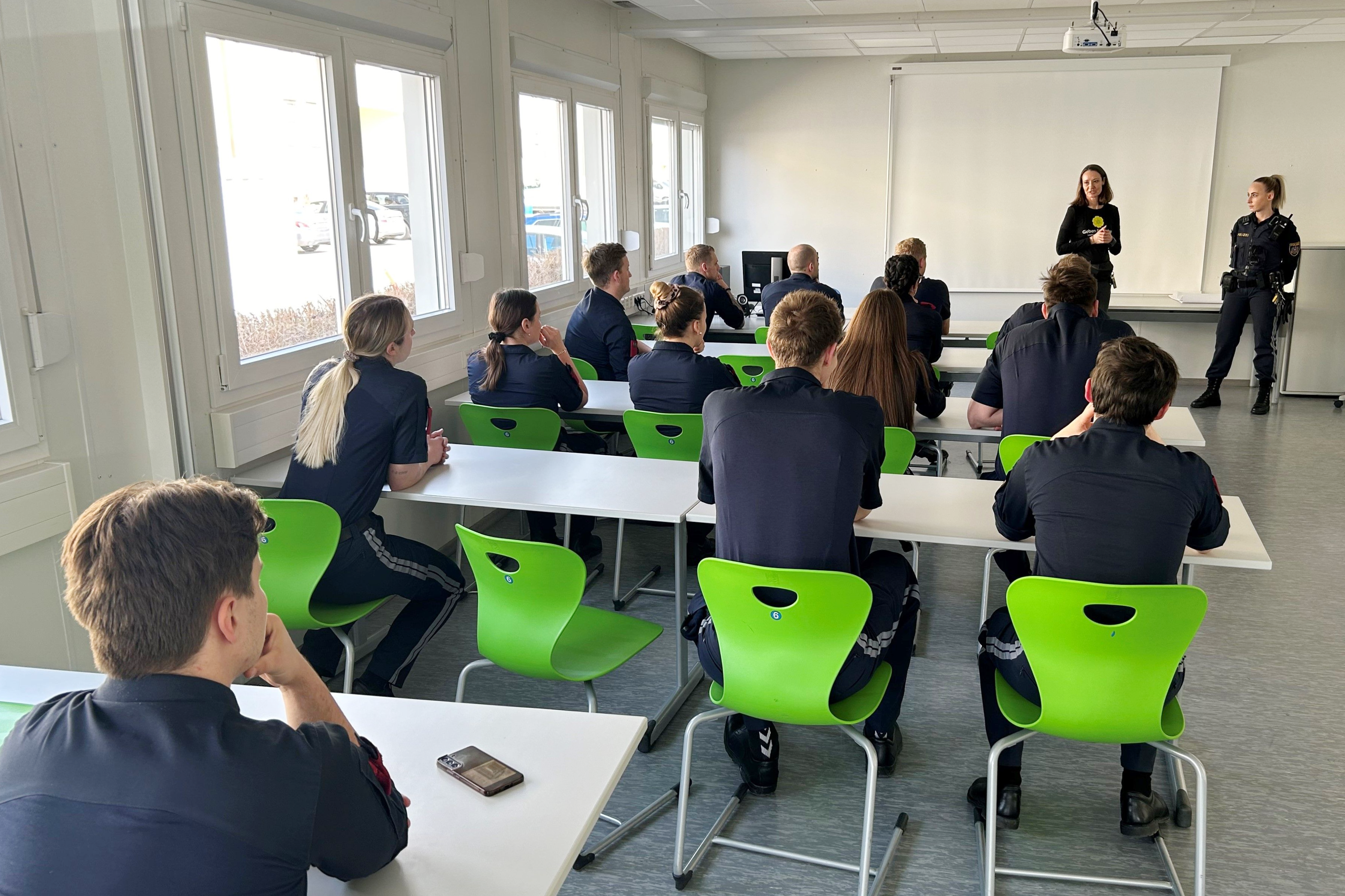 Foto: Julia Neugebauer (GfL) und Daniela Soukup bei einem Vortrag in der Polizeikaserne Krumpendorf - Download Foto
