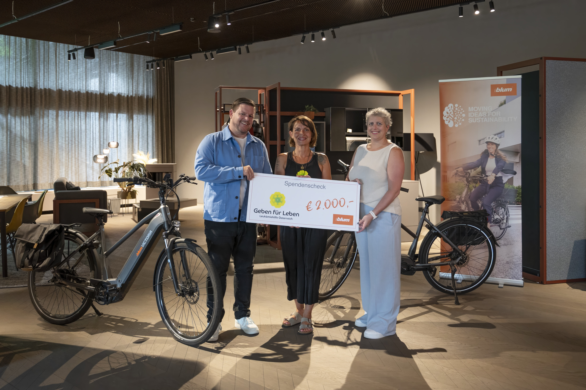 Die Firma Blum hat im Rahmen der Aktion „Vorarlberg radelt zur Arbeit“ ihre Mitarbeiter:innen motiviert, möglichst viele Kilometer mit dem Fahrrad zurückzulegen. Für jeden geradelten Arbeitstag spendete das Unternehmen zusätzlich einen Betrag für einen guten Zweck.