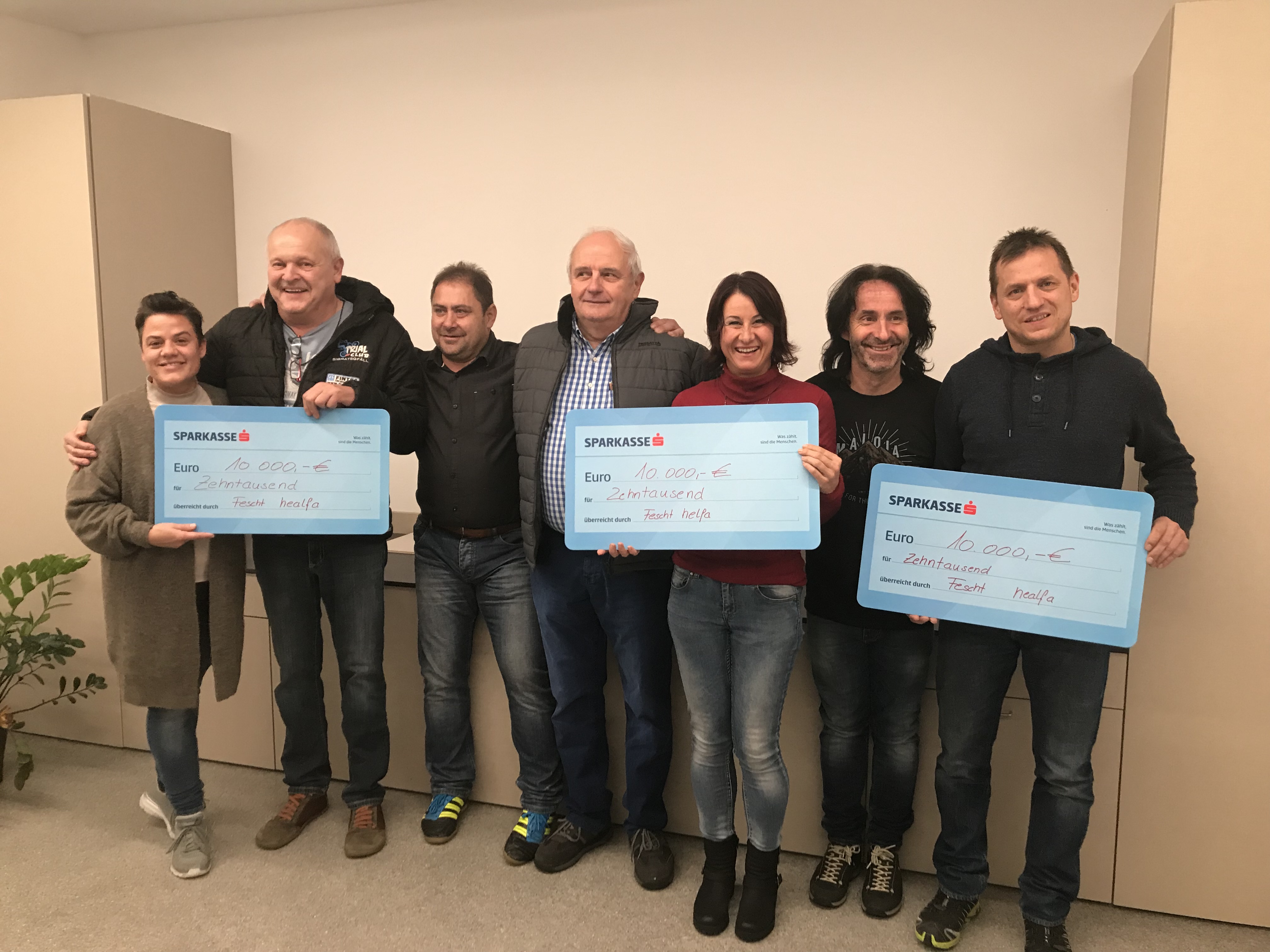 Umso mehr freut es mich verkünden zu dürfen, dass ihr Plan aufgegangen ist. Dank ihrer harten Arbeit und dem fantastischen Engagement kam ein Reinerlös von € 30.000,- zusammen, der zu gleichen Teilen auf die drei Vereine aufgeteilt wurde. Jeder Verein erhielt somit einen Scheck über unglaubliche € 10.000,-.