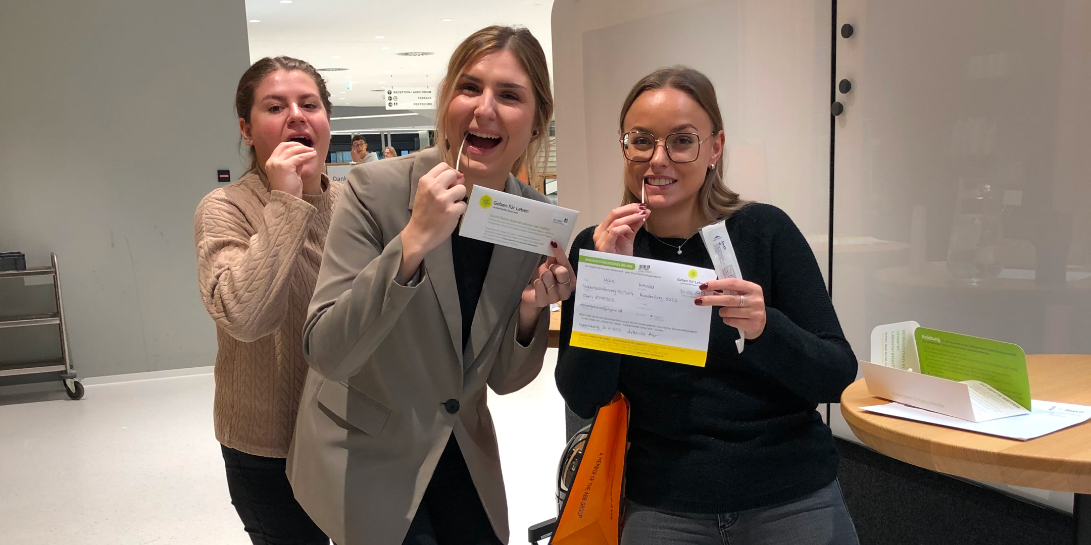 Bild: Drei von vielen B&R Mitarbeiterinnen, die sich typisieren ließen. - Download Titelbild