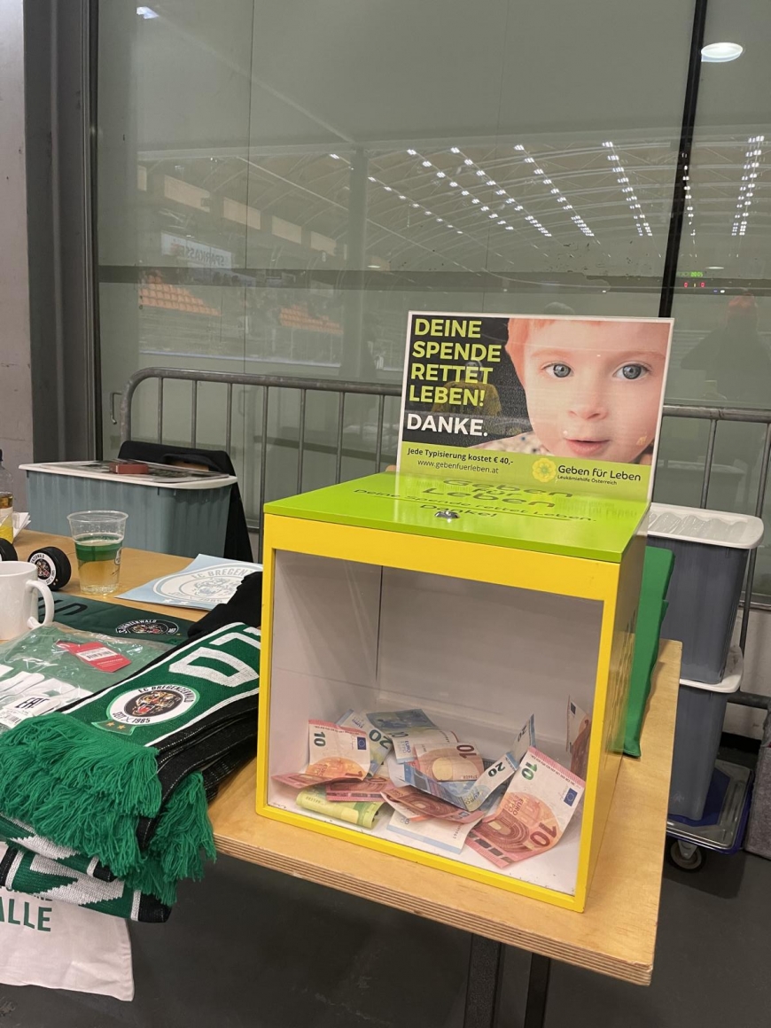 Am 5. Oktober fand im Messestadion Dornbirn im Rahmen des Spiels zwischen dem EC Bregenzerwald und den Zeller Eisbären eine Typisierungsaktion für die kleine Maria aus Lustenau statt. 56 potenzielle „LebensretterInnen“ konnten an diesem Abend gewonnen werden, die Spieler beider Mannschaften gingen hier mit gutem Beispiel voran. Zusätzlich spendeten die Fans stolze € 1.800,-.