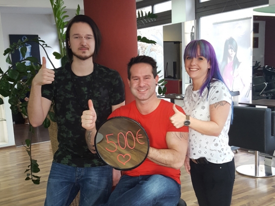 Bernhard Müller und sein engagiertes Team von Hairricane Hairstyle aus Salzburg haben in der Weihnachtszeit eine Spendenaktion für uns gestartet. Durch Trinkgelder und Kundenspenden kamen fantastische € 500,- zusammen. Vielen Dank für diese tolle Aktion!