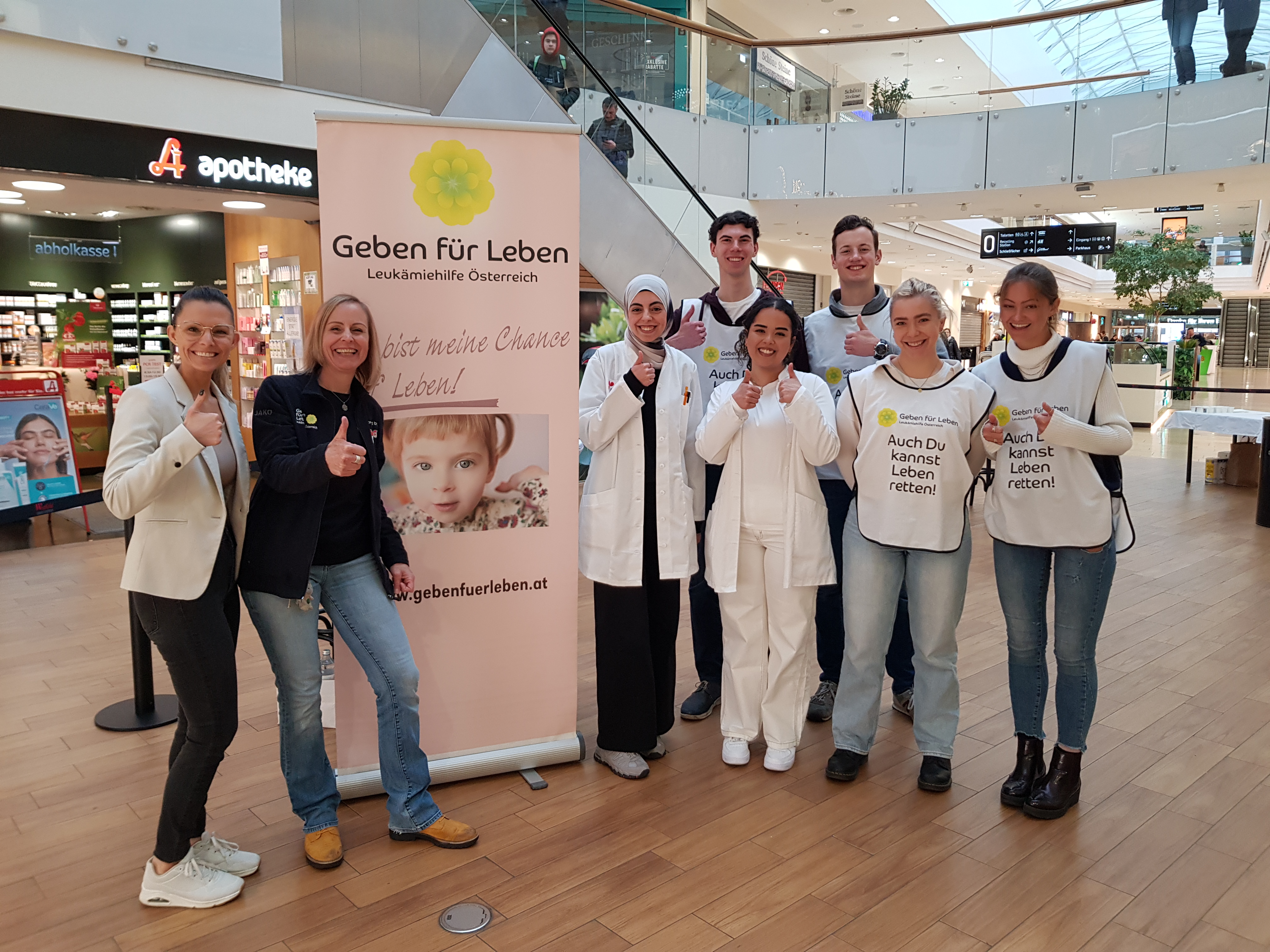 Für jede abgegebene Typisierung gab es als Dankeschön eine € 5,- Gutscheinkarte vom Westfield Donau Zentrum. Der Gutschein konnte auch gleich wieder gespendet werden, was ein Drittel auch gemacht hat. Aus der Spendenbox kamen nochmals € 246 zusammen, die für weitere Typisierungen eingesetzt werden.