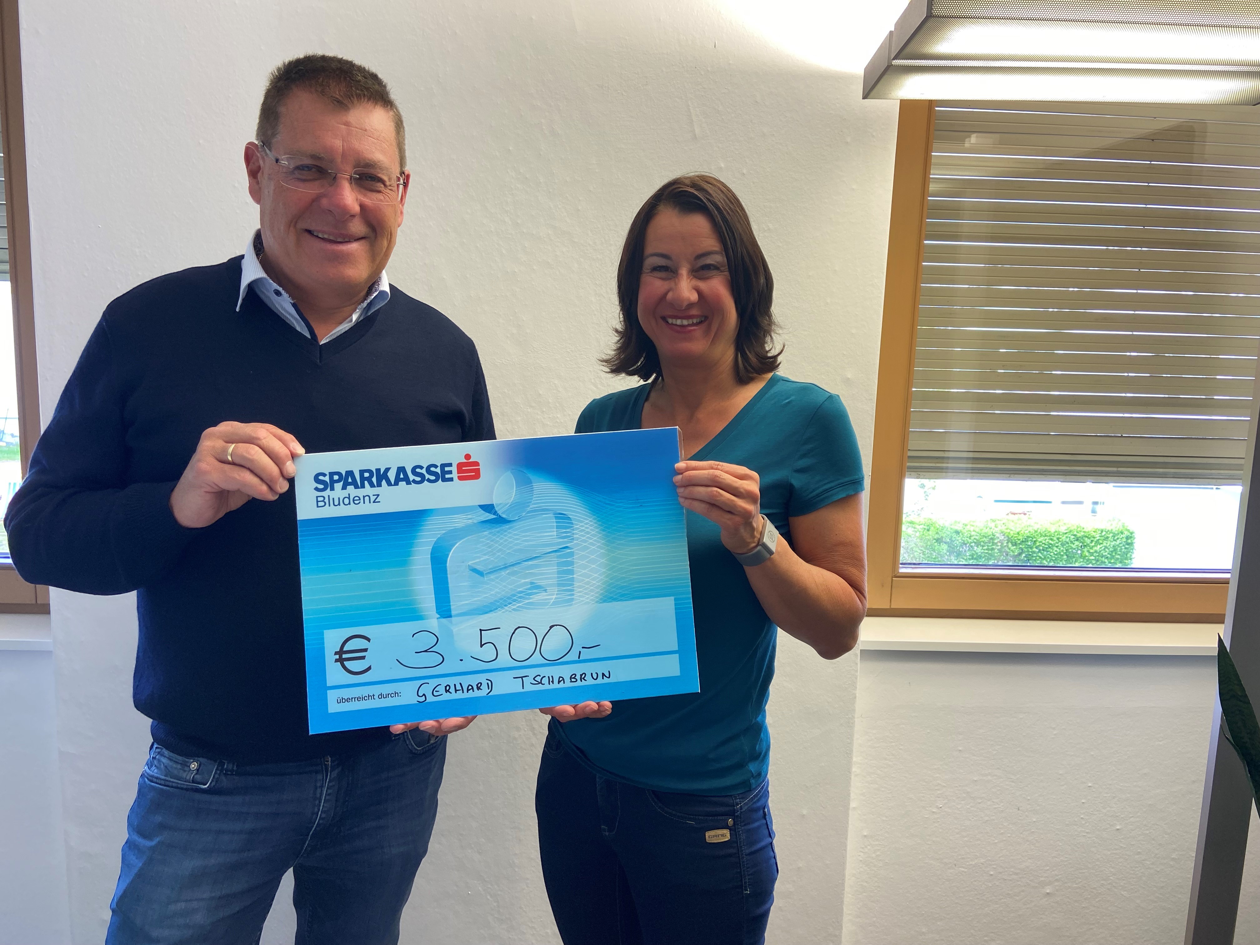 Bild: Gerhard Tschabrun und Susanne Marosch bei der Scheckübergabe - Download Foto
