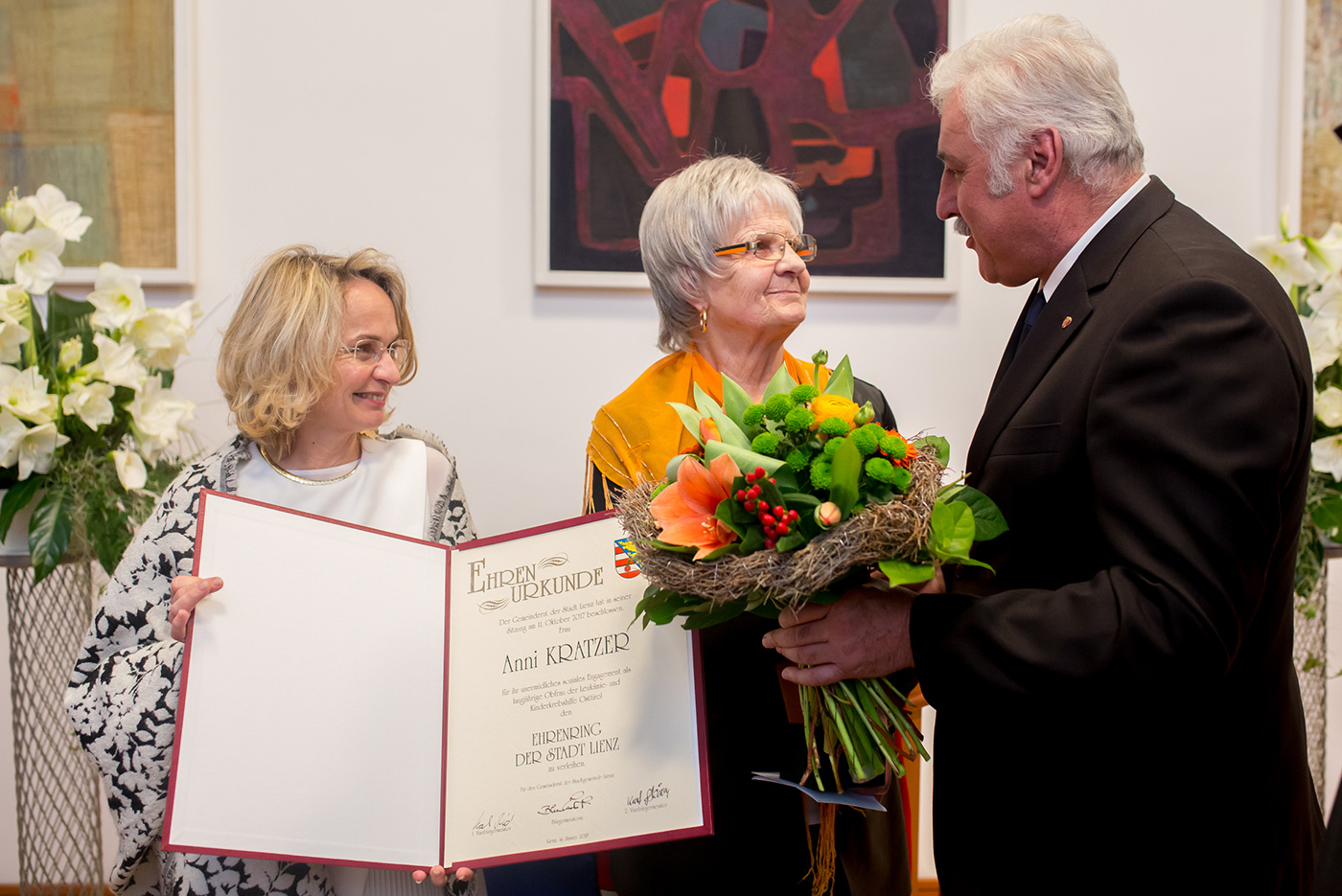 Bild: Unsere Partnerin Anni Kratzer (Mitte) bei der Verleihung des Ehrenrings der Stadt Lienz - Download Foto
