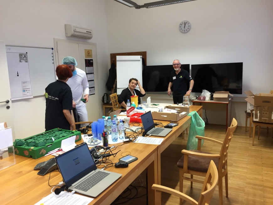 Bild: Mitarbeiter bei der Typisierung in Hartberg - Download Foto