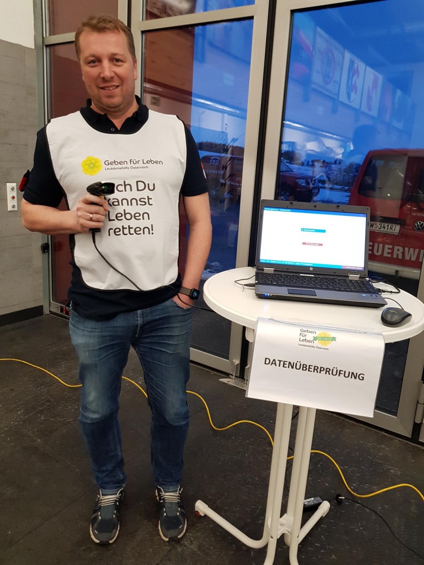 Alle Kameraden der FF Aurolzmünster waren sofort Feuer und Flamme! Unter der Organisation von Lisa-Maria Strasser wurde die Typisierungsaktion ins Leben gerufen. Es wurden Feuerwehrautos aus der Halle auf den Parkplatz gebracht, ein paar Tische, Sessel und Stromanschlüsse bereitgestellt. Die notwendige Infrastruktur war schnell geschaffen.