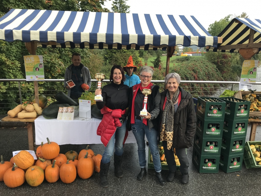 Vielen Dank an die HelferInnen Brigitte König, Karin Stoss mit Sohn Christian, Fabio Fessler und Mona Rohrer. Vielen Dank auch an Georg Geutze für die Hilfe vor Ort und die Spende der Verkaufseinnahmen seines Kochbuchs in Höhe von € 800,-. Und vor allem natürlich ein herzliches Dankeschön an Ewald Böhler und Susanne Fessler für ihren unermüdlichen Einsatz bei der Organisation und die Spende der vielen Kürbisse, deren Verkauf zu diesem fantastischen Ergebnis geführt hat.