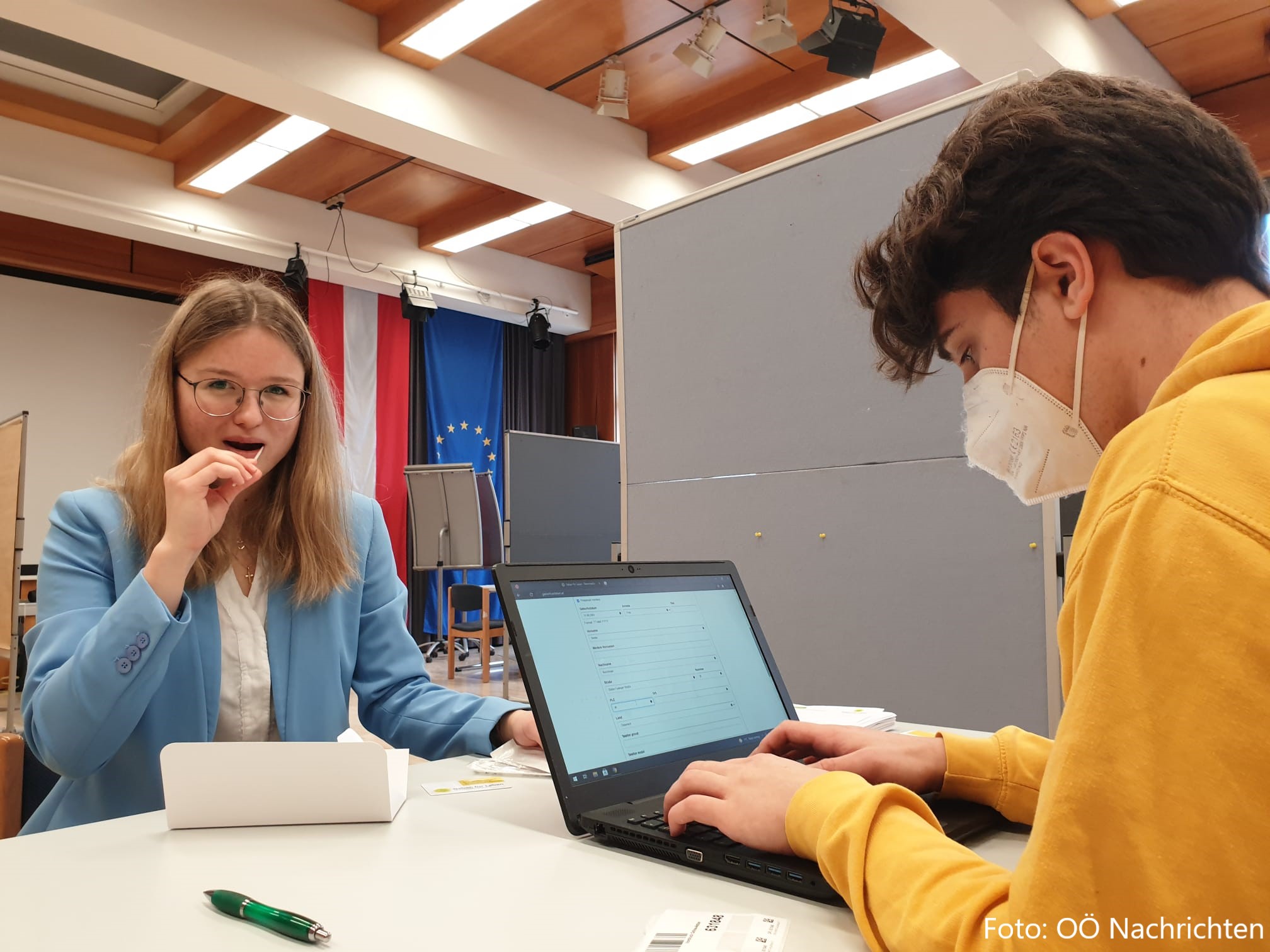 Bild: Schulsprecherin Benita Baschinger bei der Typisierung - (Bild: OÖ Nachrichten) - Download Foto
