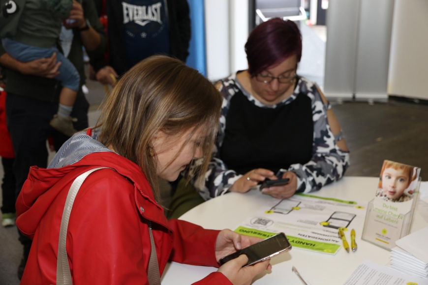 Bild: Über Tage hinweg herrschte reges Treiben im Geben für Leben-Stand, Manuel Kussian (GfL) am typisieren. (Credit: Messe Dornbirn, Udo Mittelberger) - Download Foto