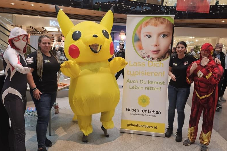 Im Trubel des Einkaufszentrums nahmen sich am 9. März gleich 37 Menschen die Zeit, um sich in wenigen Minuten ganz unkompliziert als Stammzellspender typisieren zu lassen. Jede dieser Typisierungen schenkt einem betroffenen Menschen, der auf eine lebensrettende Stammzellspende angewiesen ist, Hoffnung auf Überleben. Als Dankeschön gab es leckeres Gebäck und ein Getränk. Es wurden auch € 72 gespendet.