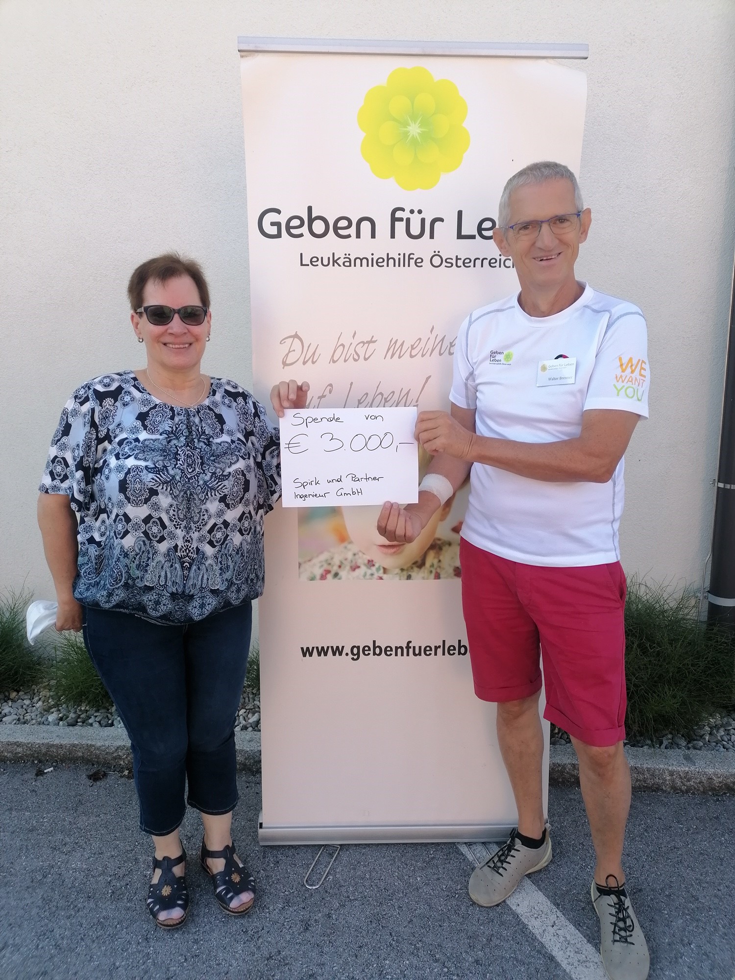 Die Geschäftsführung und die MitarbeiterInnen der Firma Spirk & Partner aus Salzburg zeigten sich berührt vom Schicksal der beiden kranken Jungs und wollten helfen. So sammelten sie € 1.385,- in der Belegschaft, die von der Geschäftsführung zuerst auf € 2.770,- verdoppelt und dann noch auf € 3.000,- aufgerundet wurden.