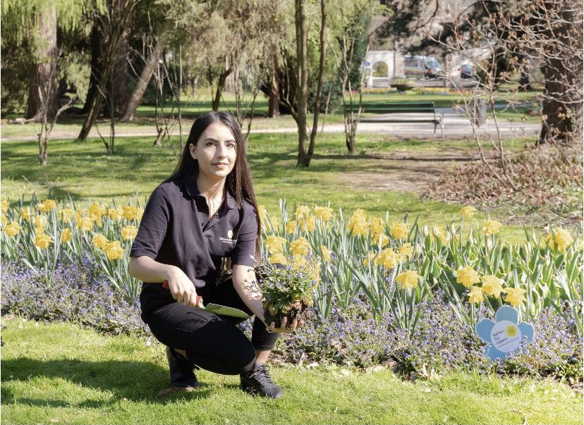 Bild: Unsere Mitarbeiterin Elifnur pflanzt ein Vergissmeinnicht als Dankeschön im Hofgarten Innsbruck - Download Foto (Fotocredit: 2quadr.at)