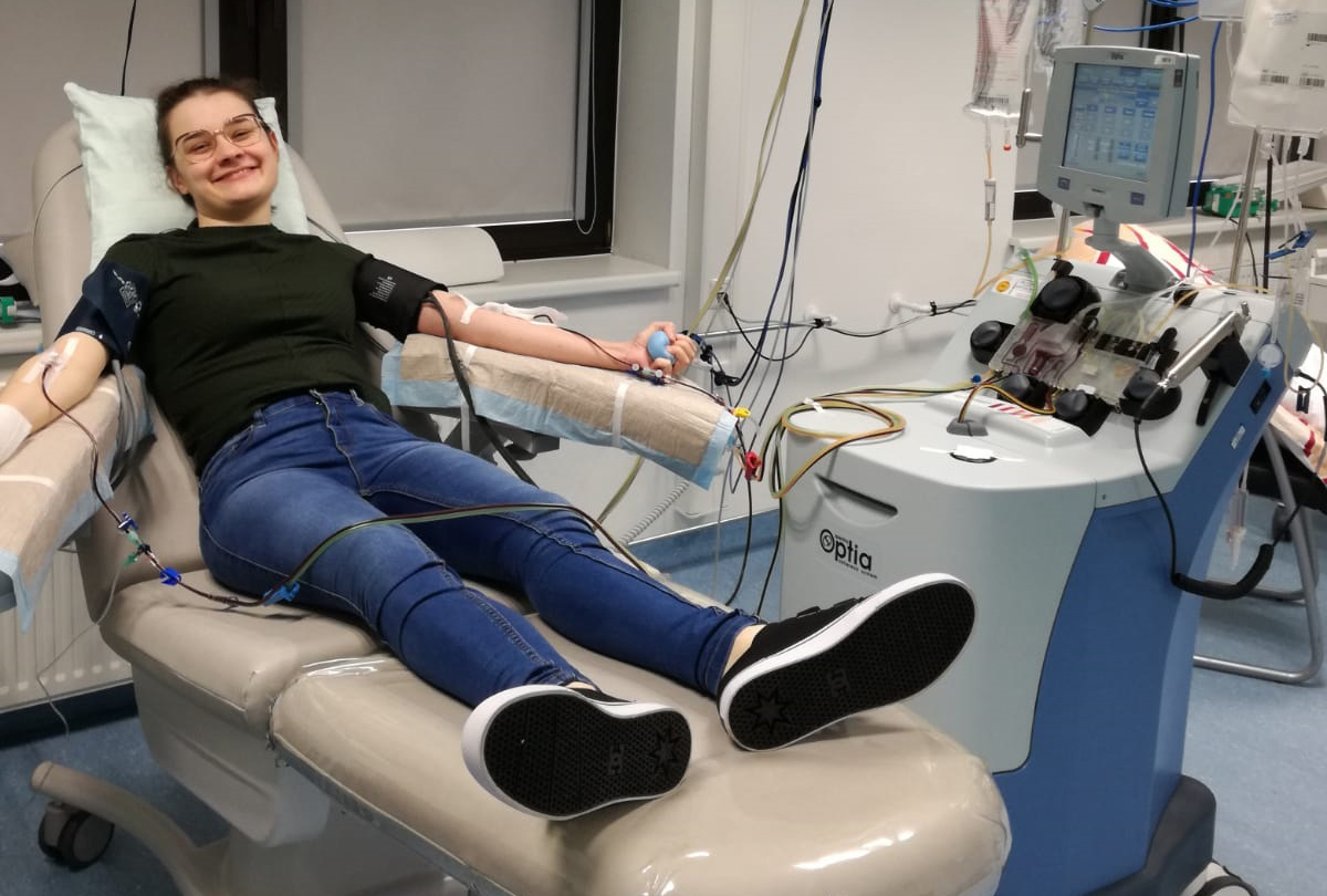 Bild: Unsere 161. Lebensretterin Julia bei der Stammzellspende - Download Foto