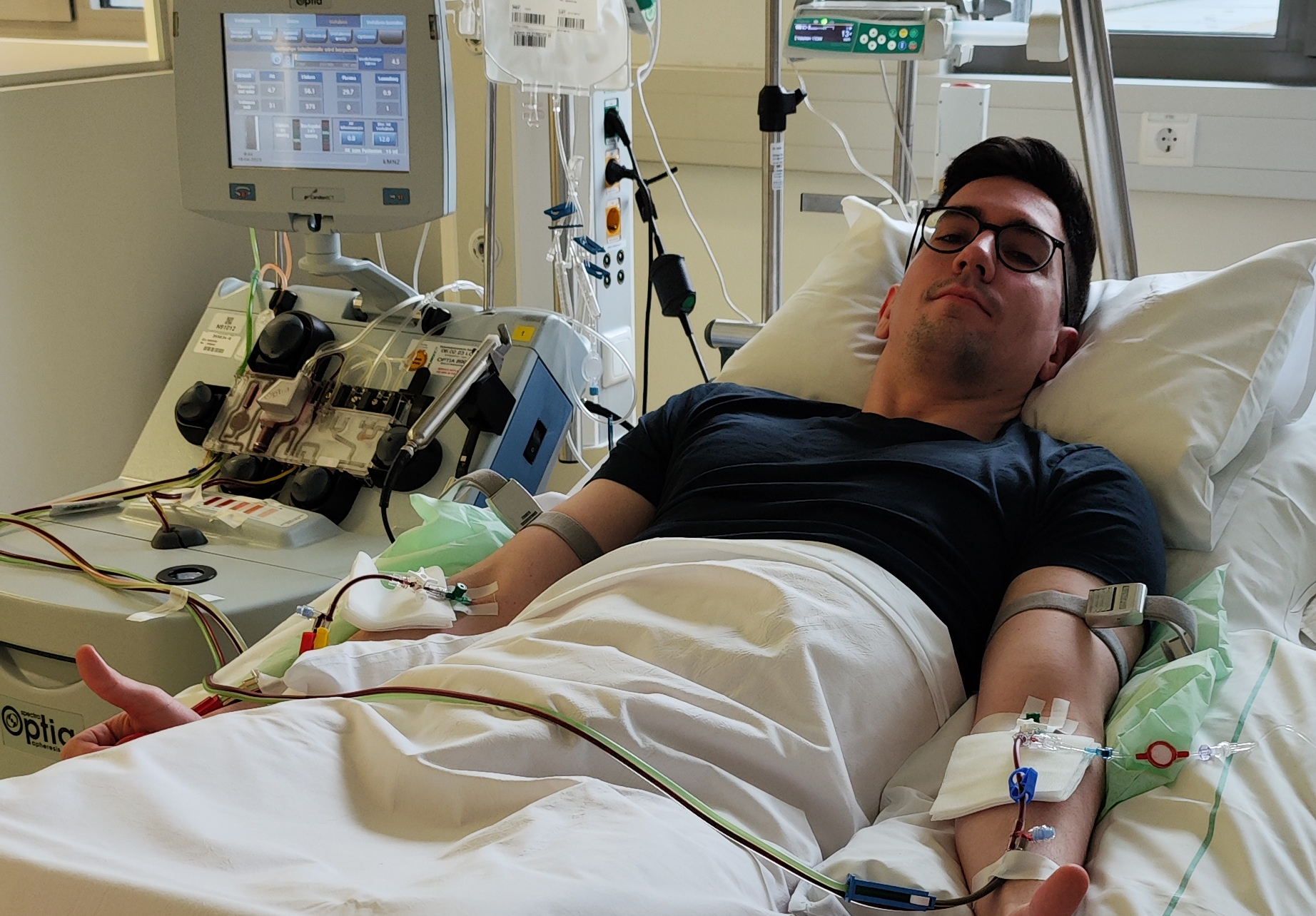 Bild: Jakob bei der Stammzellspende - Download Foto