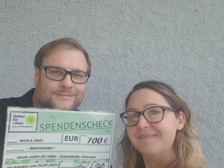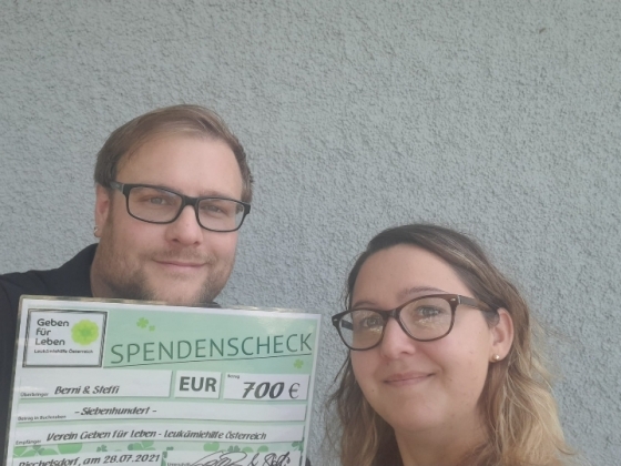 Bild: Bernhard Gallhammer und Stefanie Wimmer mit dem Spendenscheck - Download Foto