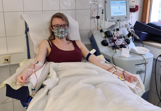Bild; Unsere 217. Lebensretterin Julia bei der Stammzellspende - Download Foto
