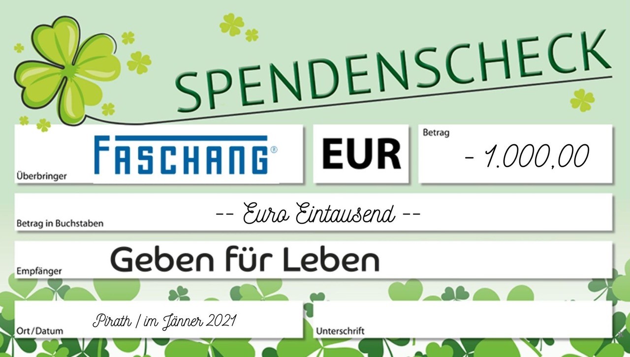 Bild: Der kreative Spendenscheck der Firma Faschang - Download Foto