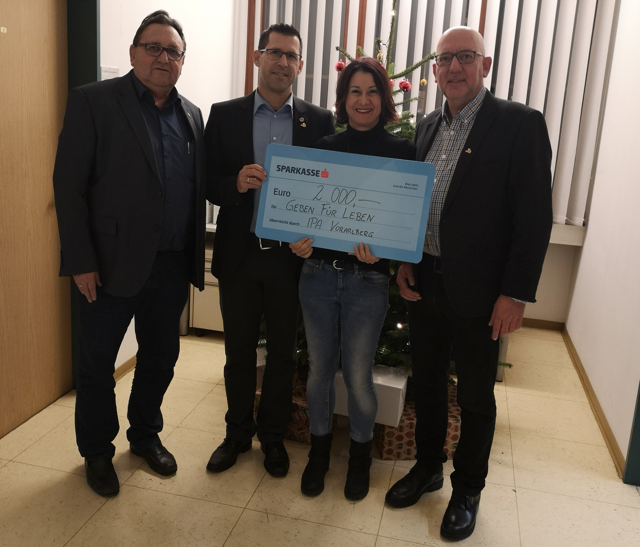 Die Landesgruppe Vorarlberg der International Police Association (IPA) übergab mir vor Weihnachten eine Sozialspende in Höhe von € 2.000,-. Damit können wir weitere 40 Typisierungen finanzieren! Vielen Dank an unsere "Freunde und Helfer" in Vorarlberg.