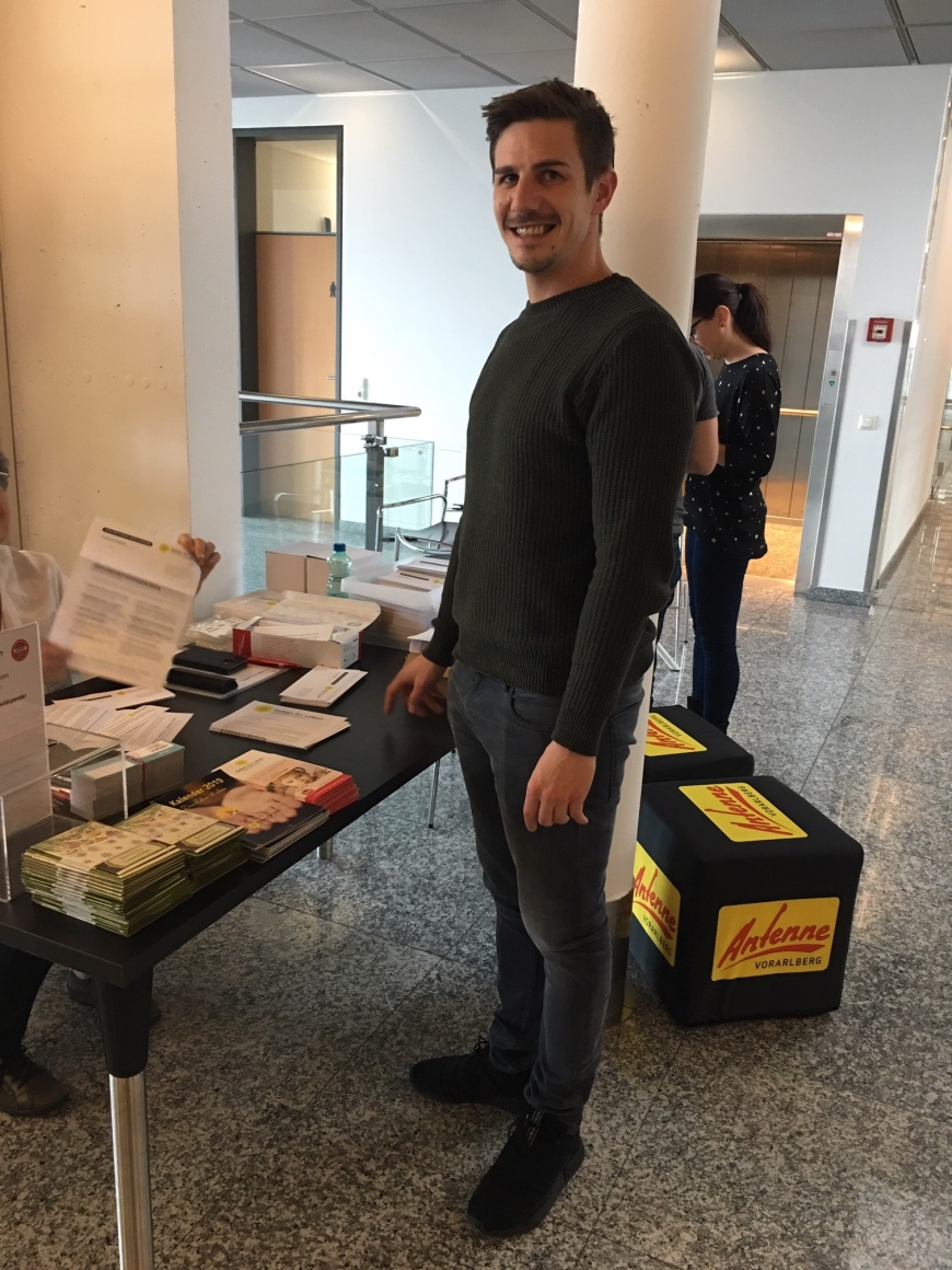 Vielen Dank dem engagierten Team der Antenne Vorarlberg für die fantastische Unterstützung bei der Oganisation und bei der intensiven Berichterstattung im Vorfeld und während der Veranstaltung. Dank euch haben viele potentielle LebensretterInnen ins Studio gefunden. Sie haben teilweise sogar ihre Mittagspause für die Typisierung verwendet.