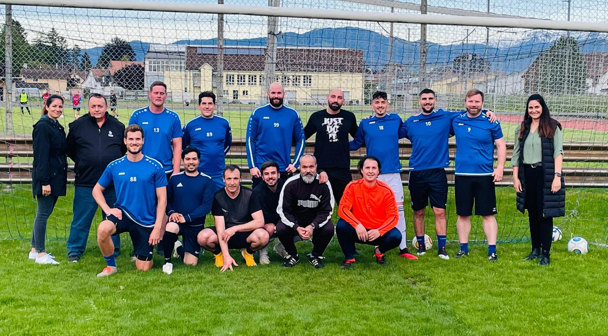 Bild: Die erste Mannschaft des FC St. Magrethen mit unserer Organisatorin Ayca (r.) - Download Foto