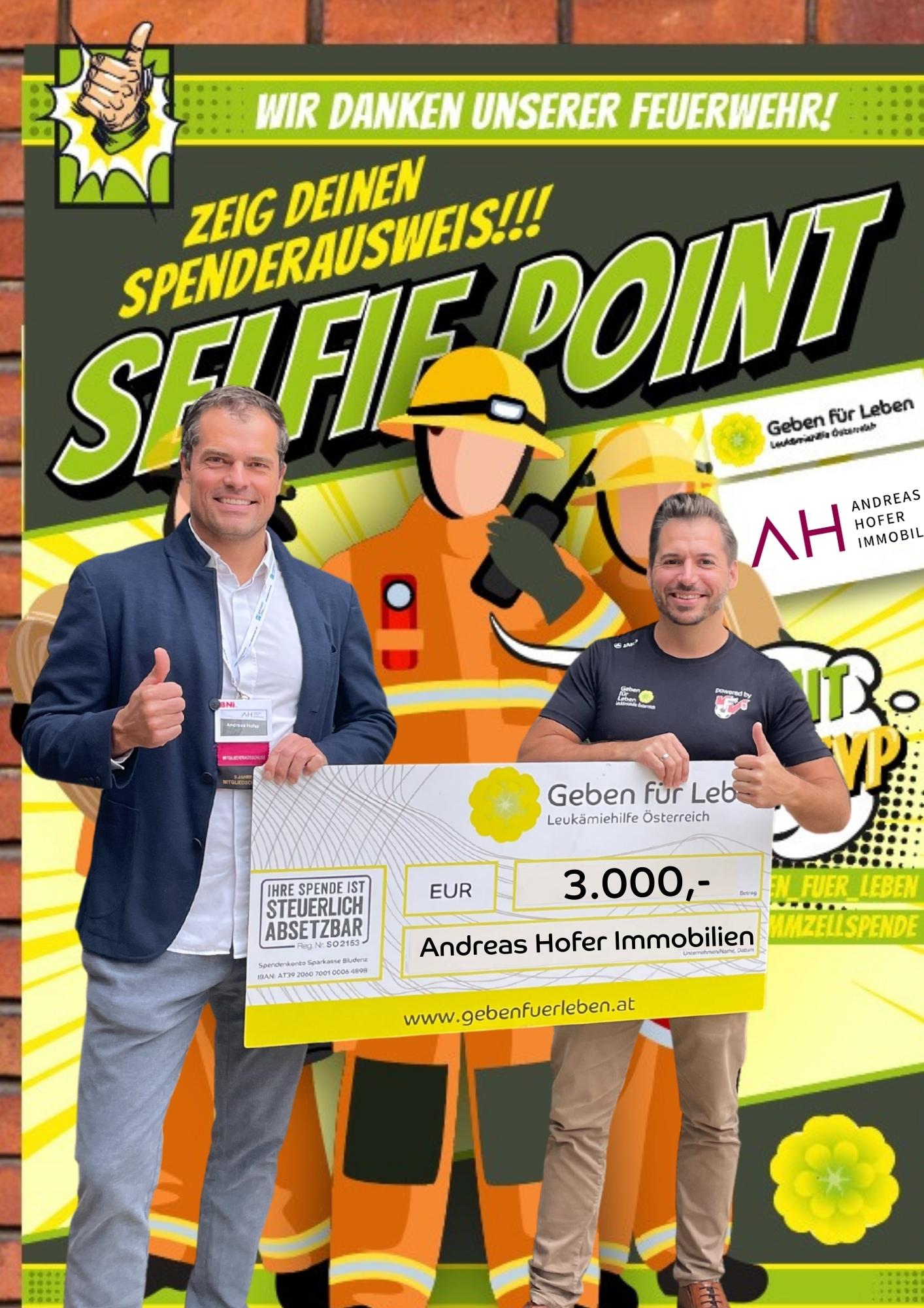 Andreas Hofer, von Andreas Hofer Immobilien, zögerte nicht lange als er erfuhr, dass wir für die Typisierungsaktion im Feuerwehrhaus Lustenau einen Sponsor für die „Geben für Leben-Instawall“ suchten.
