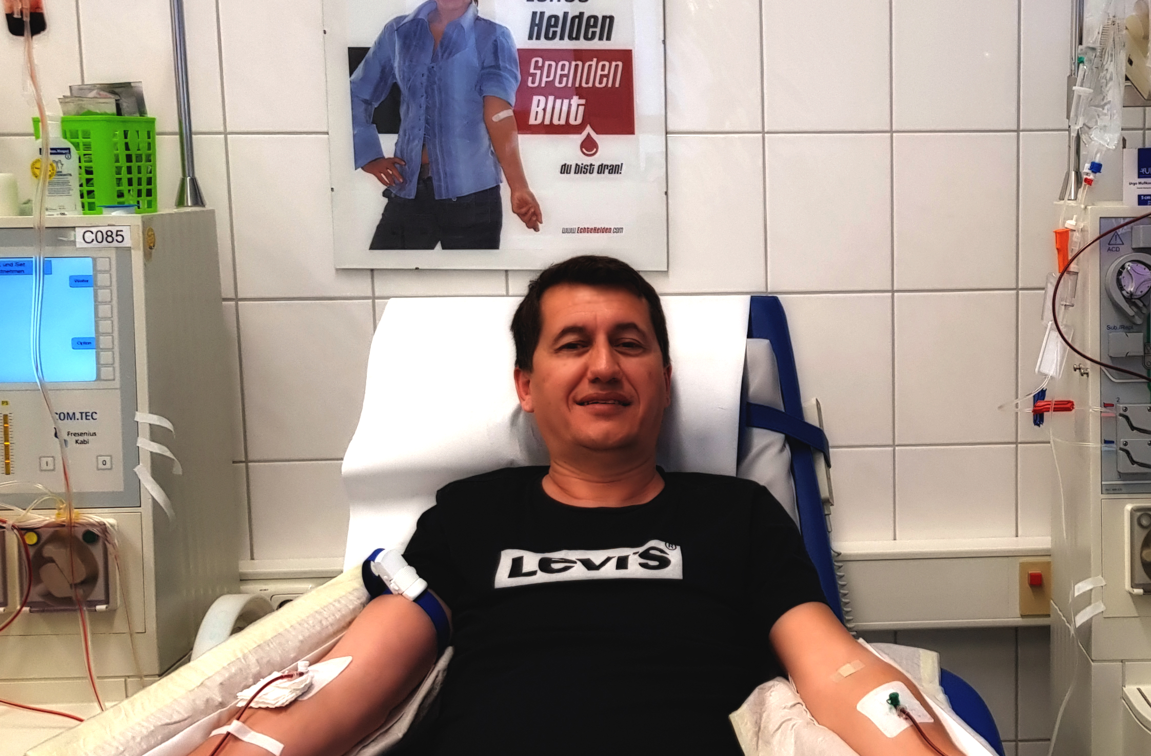 Bild: Unser 109. Lebensretter Driton bei der Stammzellspende - Download Foto
