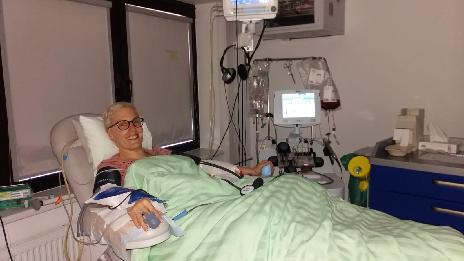 Bild: Unsere 108. Lebensretterin Barbara aus Tirol bei der Stammzellspende - Download Foto