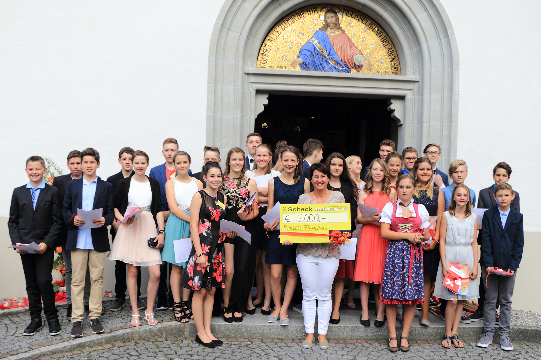 Bild: Die Firmlinge aus Braz bei der Scheckübergabe - Download Foto