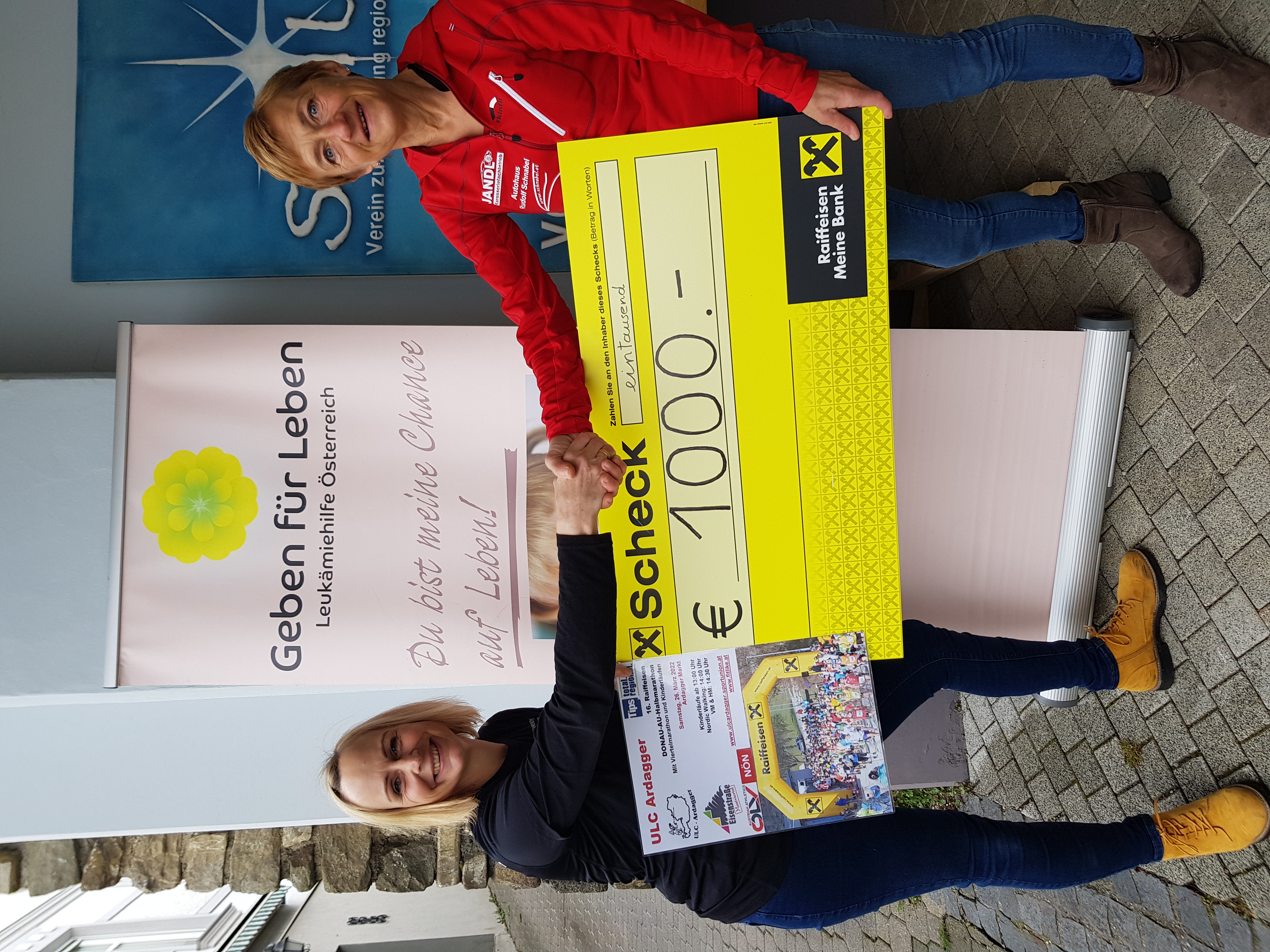 Pro Starter sollten € 2,- gespendet werden, wodurch € 550,- zusammenkamen. Dieser Betrag wurde vom Verein ULC Ardagger noch auf € 1.000,- aufgerundet.