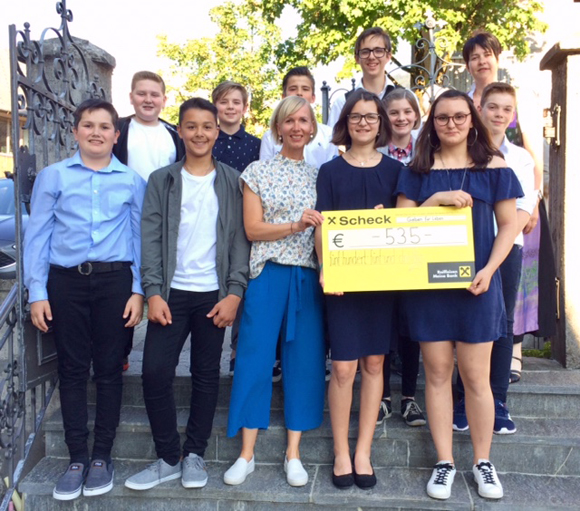 Nach ihrem Vorstellungsgottesdienst am 29. April haben sie eine Agape für die Gäste veranstaltet, bei der sie Geld für uns sammelten. Nach ihrer Firmung am 25. Mai übergaben sie einen symbolischer Scheck in Höhe von großartigen € 535,- an unsere Mitarbeiterin Monika Schöpf.