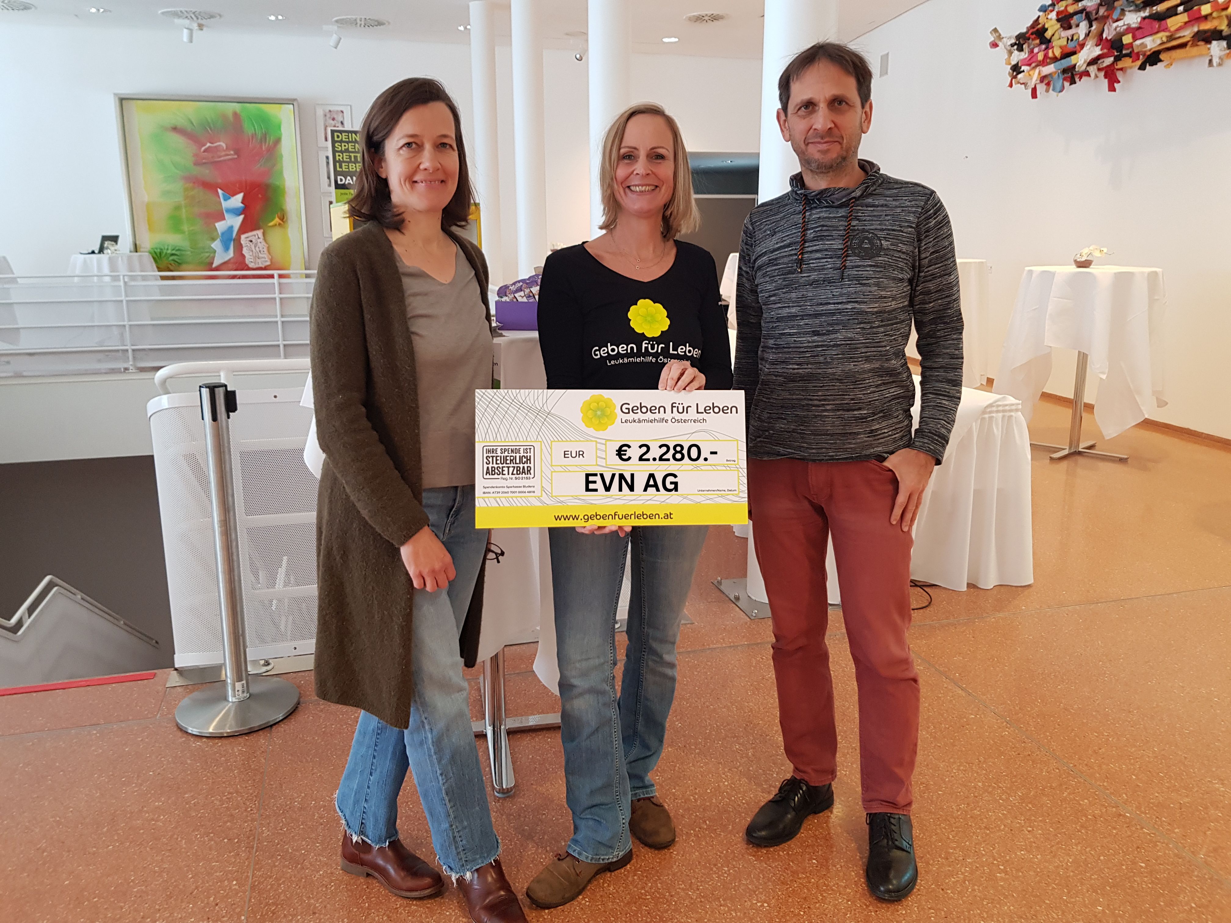 Jede Typisierung eines neuen Stammzellspenders kostet den Verein € 40,- und muss zu 100% durch Geldspenden finanziert werden. Mit diesem wertvollen Beitrag können weitere Typisierungen durchgeführt werden! Die EVN hat die Typisierungskosten in der Höhe von € 2.280.-, übernommen. Vielen Dank für diese großzügige Unterstützung!