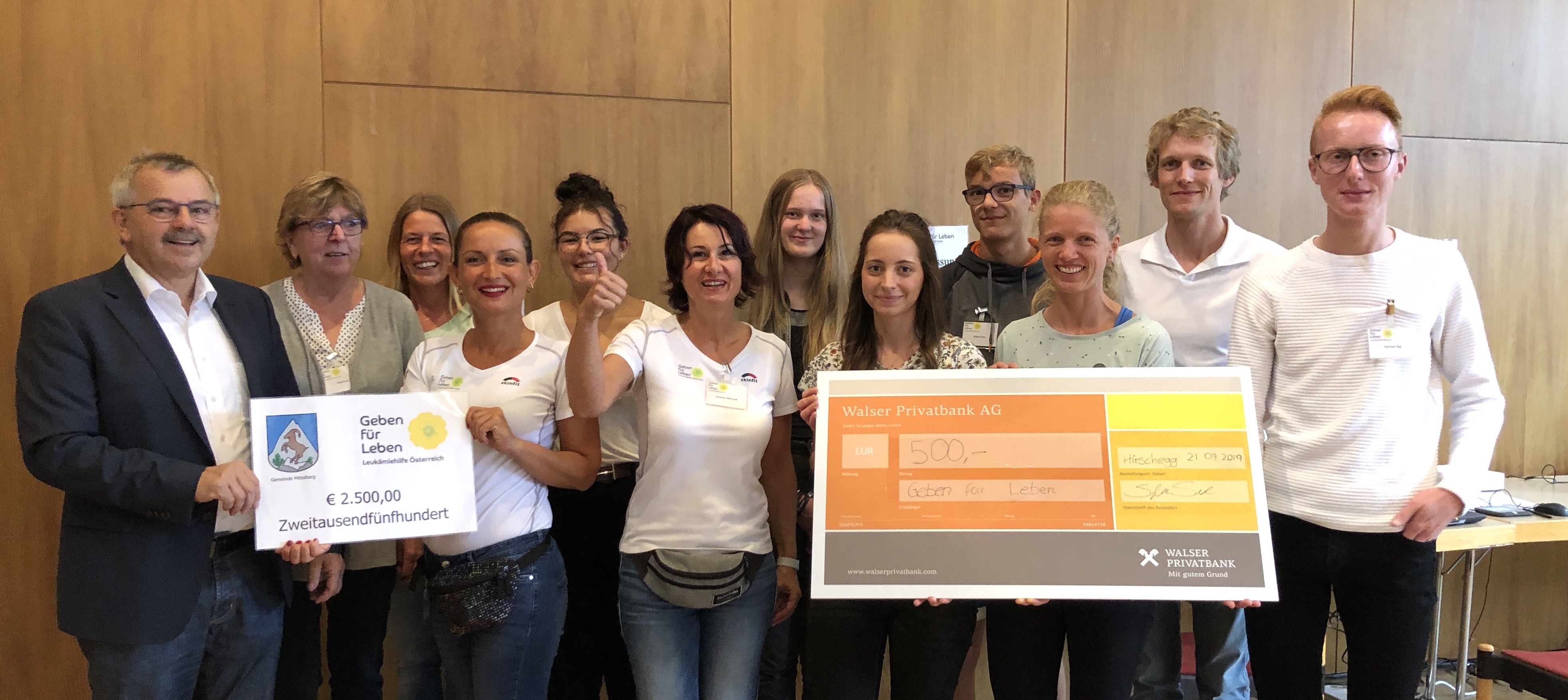 Am 21. Juli fand in Hirschegg das Fest der Walserrettung statt. In diesem Rahmen führten wir gemeinsam mit dem Roten Kreuz 172 Typisierungen durch. Zudem bekamen wir Spenden in Höhe von großartigen € 3.400,-! Davon kamen € 2.500,- von der Gemeinde Mittelberg, € 500,- vom Hello...Eventteam und € 400,- von der Raiffeisenholding. Über € 900,- wurden zudem in unsere Spendenbox geworfen. Vielen Dank den großzügigen Spendern!