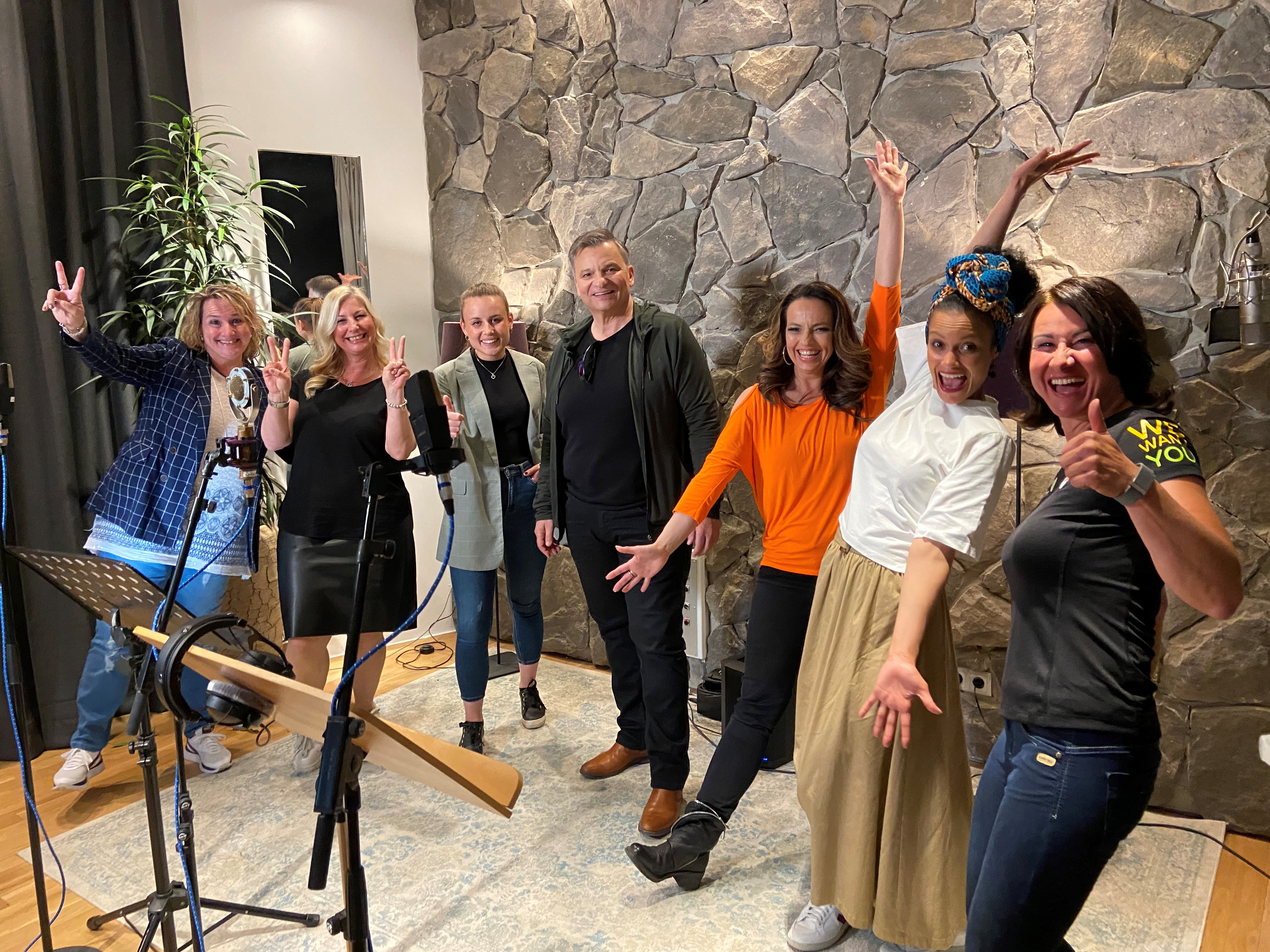 Bild: Das KünstlerInnenteam bei der Song-Aufnahme im Studio - Download Foto